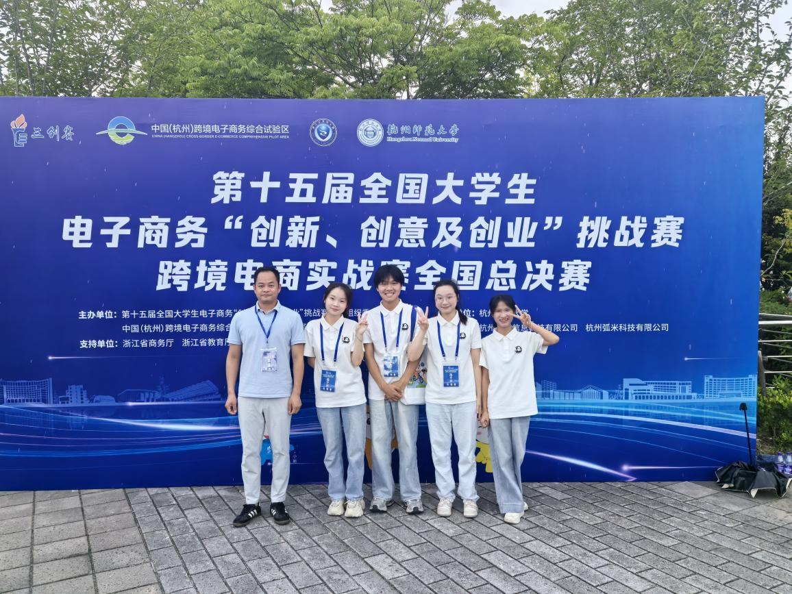 跨境电商实战赛(7月10日,杭州),覆盖全国32个省、市、自治区857所高校的6486支团队踊跃报名,来自86所高校的100支精英队伍最终齐聚杭州进入全国总决赛。纽约国际官网“八方进宝”团队以广西赛区第一名的优异成绩晋级,并最终荣获全国一等奖。该团队的两位指导老师同时获评“全国总决赛优秀指导老师”。