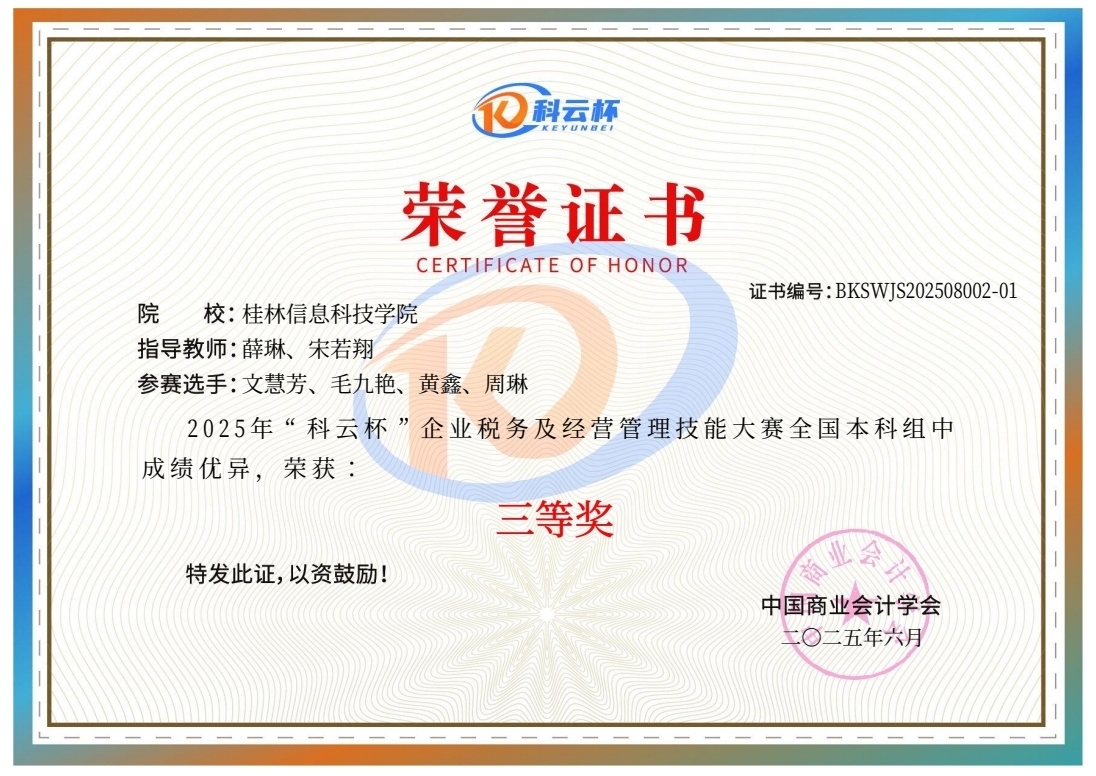 【喜报】2025年“科云杯”本科组企业税务及经营管理技能大赛中喜获佳绩