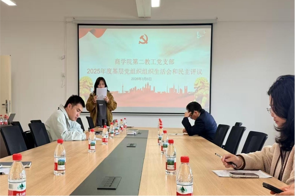 3月6日,商学院第二教工党支部在H621会议室召开2025年度基层党组织组织生活会,并同步开展民主评议党员工作。会议由党支部书记潘捷主持,支部全体党员参加。