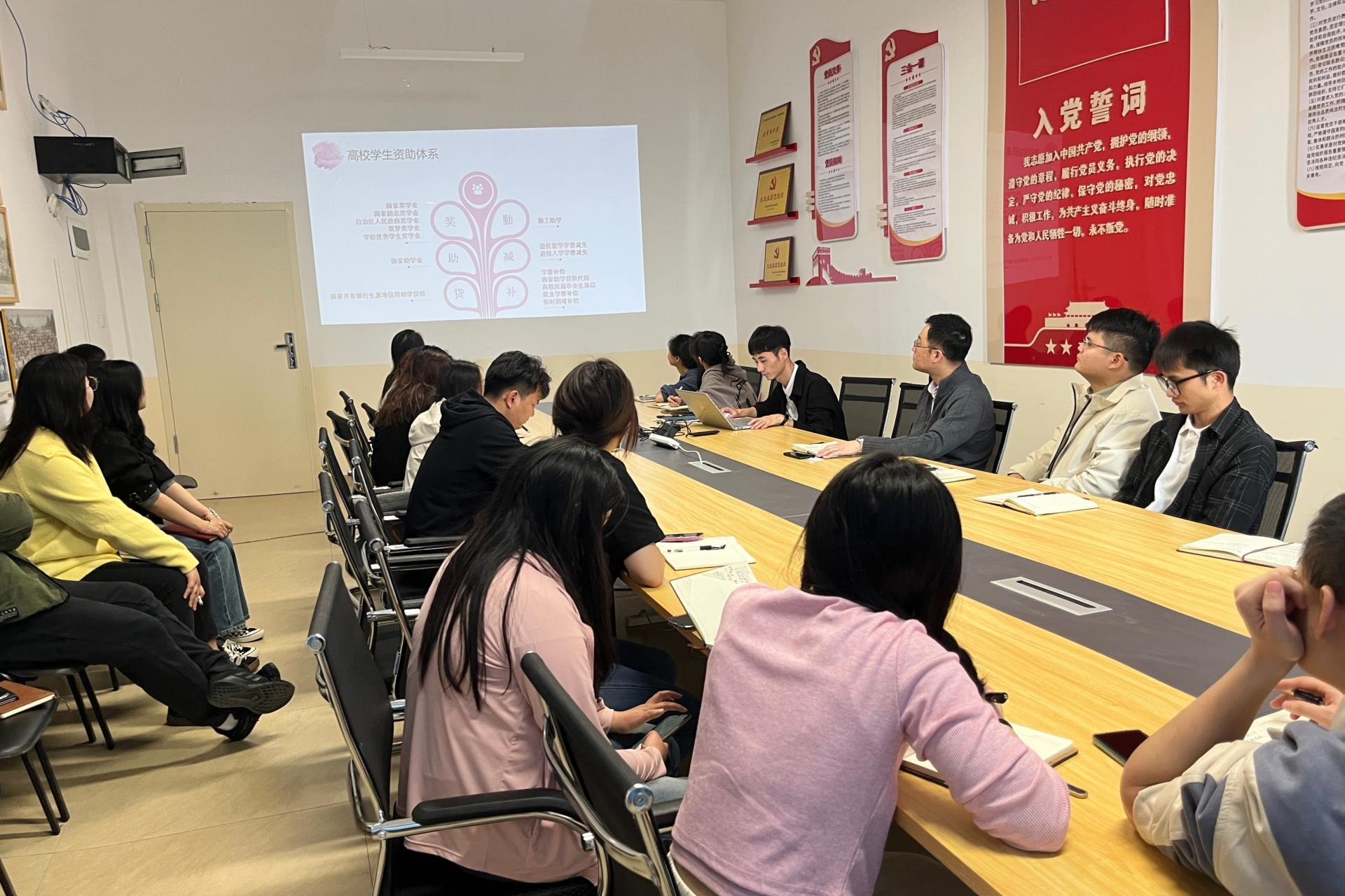 为深入贯彻落实国家资助政策,提升资助工作队伍专业化水平,3月28日,商学院学工办在博文楼F504开展学生资助工作专题培训会,全体辅导员参加,学工办负责人马金博主持会议。