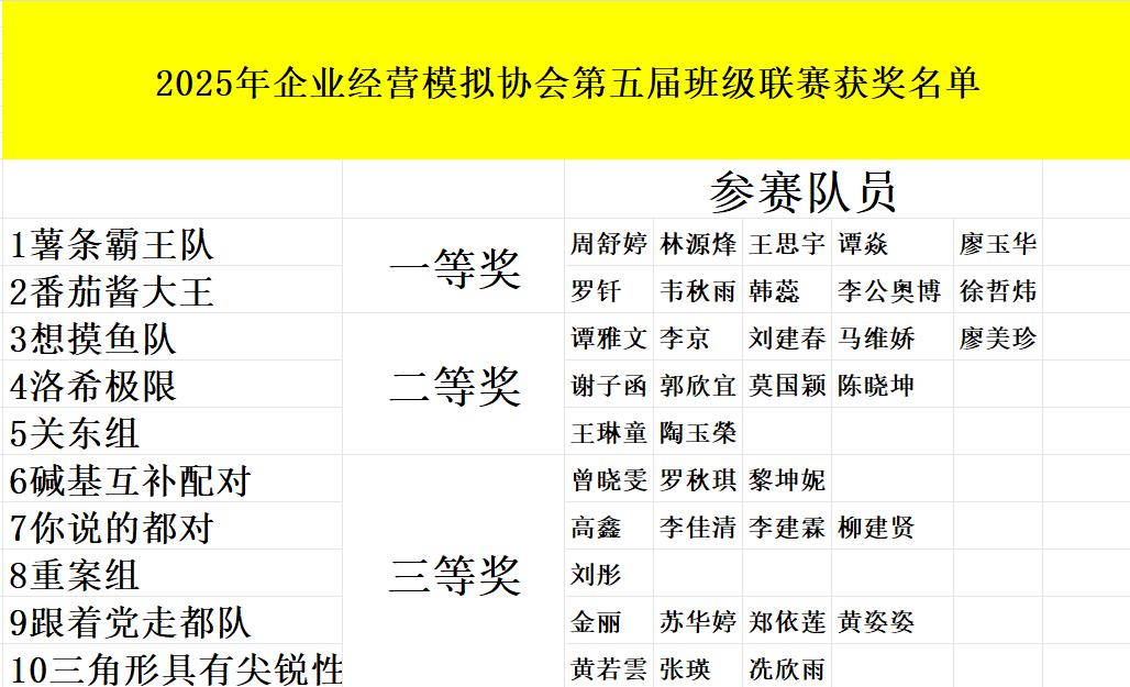 企业经营模拟协会第五届班级联赛获奖名单