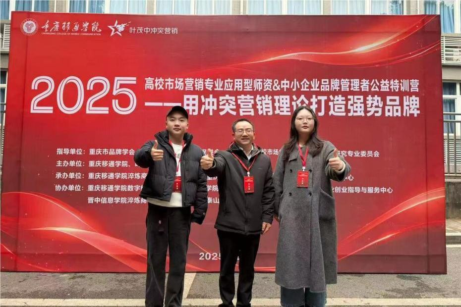 12月26日至27日,由重庆市品牌学会、重庆市中小企业发展促进会等单位指导,重庆移通学院与叶茂中冲突商学院联合主办的“高校市场营销应用型师资&中小企业品牌管理者公益特训营”在重庆移通学院举办。为深化产教融合、提升师资实战能力,我院罗志明副院长带领市场营销教研室冯超民老师、卢昌蓬老师一行,前往参与了本次培训。