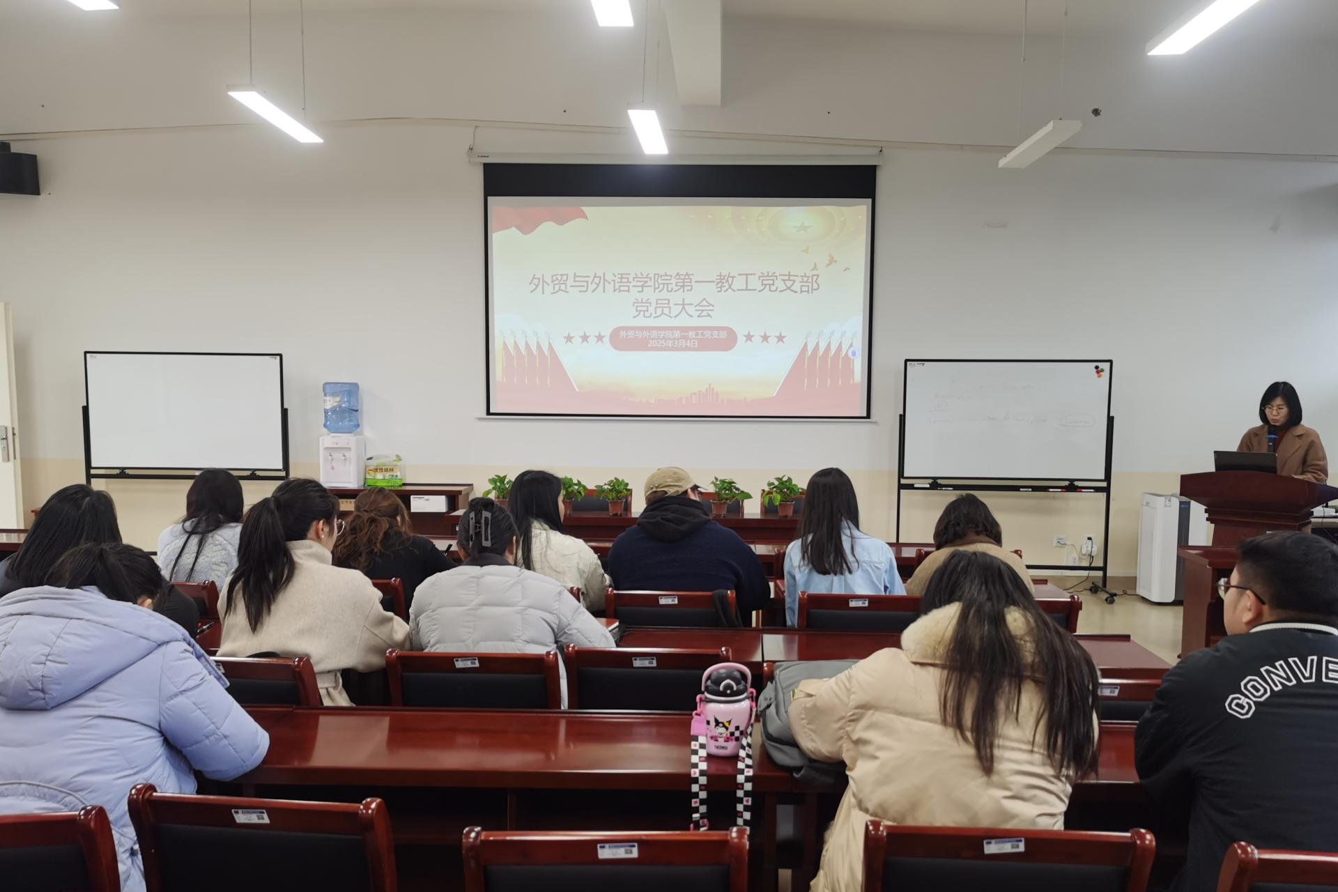 为加强基层党组织建设,更好发挥党组织战斗堡垒作用和党员的先锋模范作用,3月4日,外贸与外语学院第一教工党支部在博文楼 F512 会议室召开党员大会,选举产生新一届支部委员会。