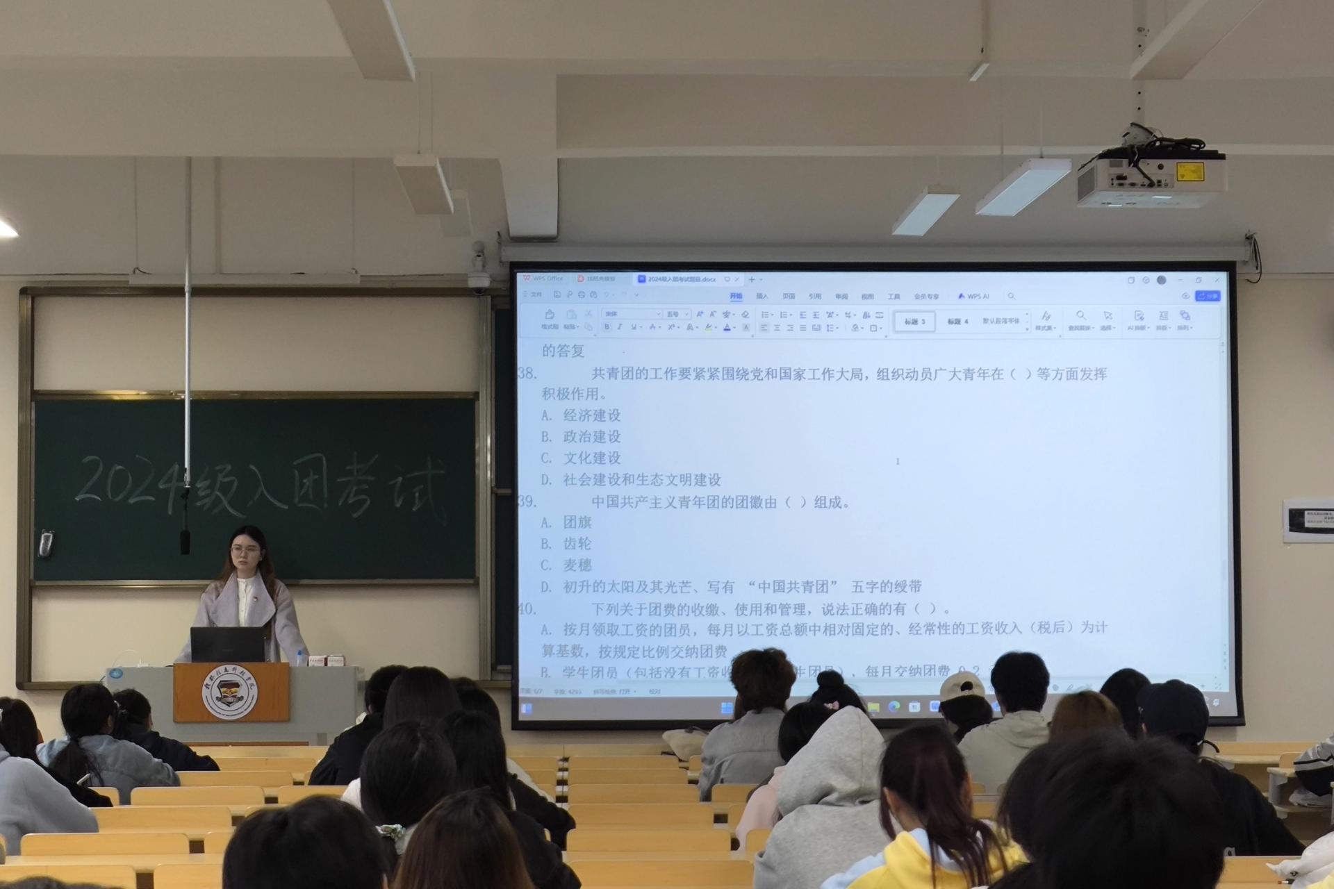 为进一步加强共青团组织建设,不断为团组织注入新鲜血液,切实提高团员发展质量,4月9日中午,外贸与外语学院在D308教室组织开展了2024级学生入团考试,90名入团申请人参加了此次考试。