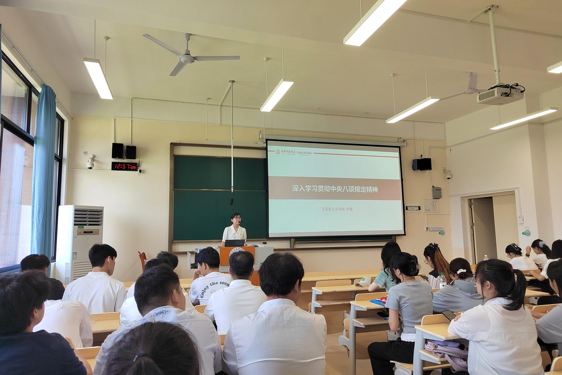 会上,李偲老师以“深入贯彻中央八项规定精神学习教育” 为题,围绕中央八项规定出台的背景、主要内容和重大意义进行了详细阐述,结合高校党建工作实际,通过典型案例分析,深入剖析违反中央八项规定精神的具体表现及严重危害,强调全体党员要提高政治站位,深刻认识中央八项规定精神的重要性和长期性,自觉抵制 “四风”,时刻保持清醒头脑,做到廉洁自律。