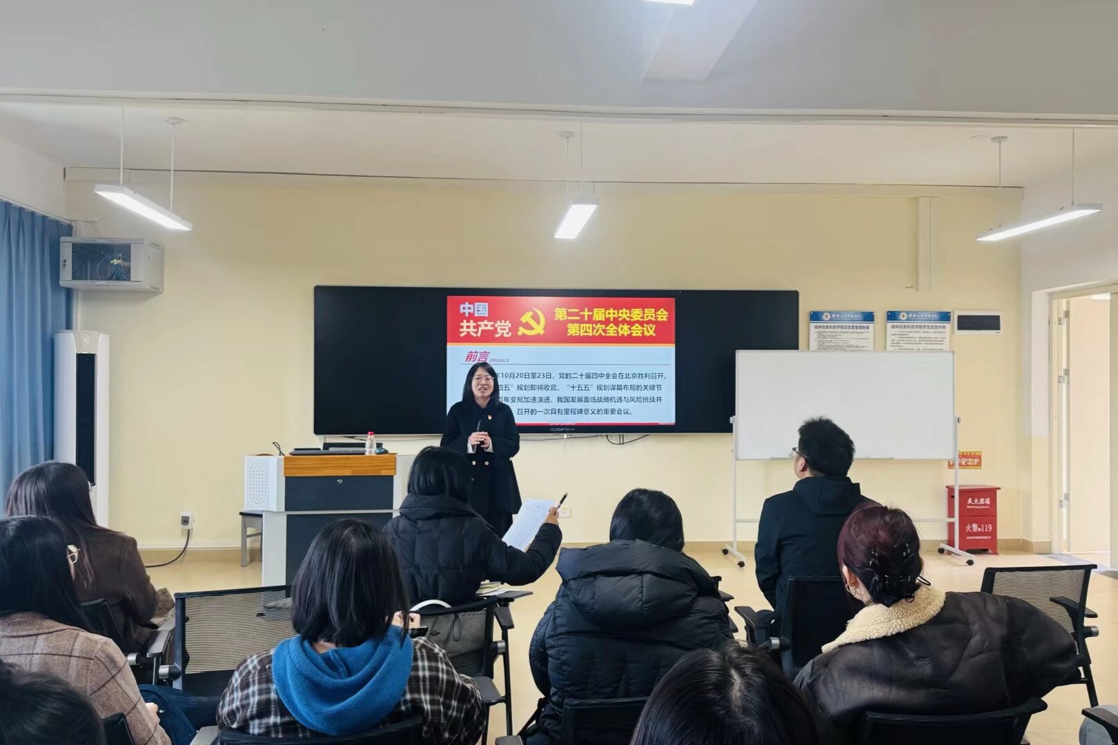 党课伊始,蒋春妹老师重点阐述了党的二十届四中全会的召开背景与重大意义。她指出,2025 年 10 月 20 日至 23 日在北京召开的此次全会,处于 “十四五” 规划即将收官、“十五五” 规划谋篇布局的关键节点,面对世界百年变局加速演进的复杂形势,会议具有里程碑意义。授课中,蒋春妹老师围绕“全会内涵是什么”、“习近平总书记为何重视‘十五五’规划编制”“‘十四五’交出怎样的答卷”“全会擘画怎样的未来蓝图”四大核心内容展开,条理清晰地解读精神要义与发展方向。党课尾声,蒋春妹老师号召全体党员老师将全会精神融入教学科研、学习成长,紧密团结在以习近平同志为核心的党中央周围,以实干担当为推进中国式现代化、谱写“十五五”发展新篇章贡献力量。