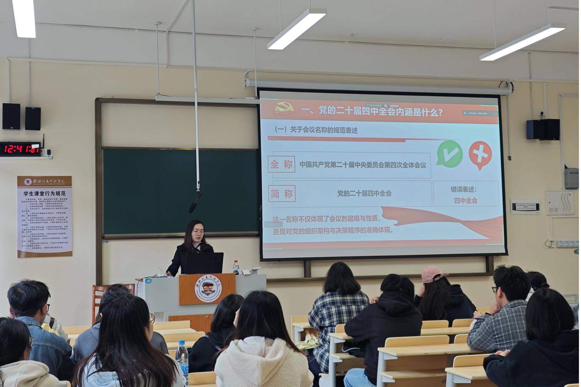 12月2日,外贸与外语学院第一学生党支部在D305开展以“党的二十届四中全会精神学习”为主题的学习会。本次学习特邀马克思主义学院党总支组织员陶纪宏老师主讲,围绕党的二十届四中全会内涵、习近平总书记重视“十五五”规划编制的深层原因等核心问题展开深入解读。