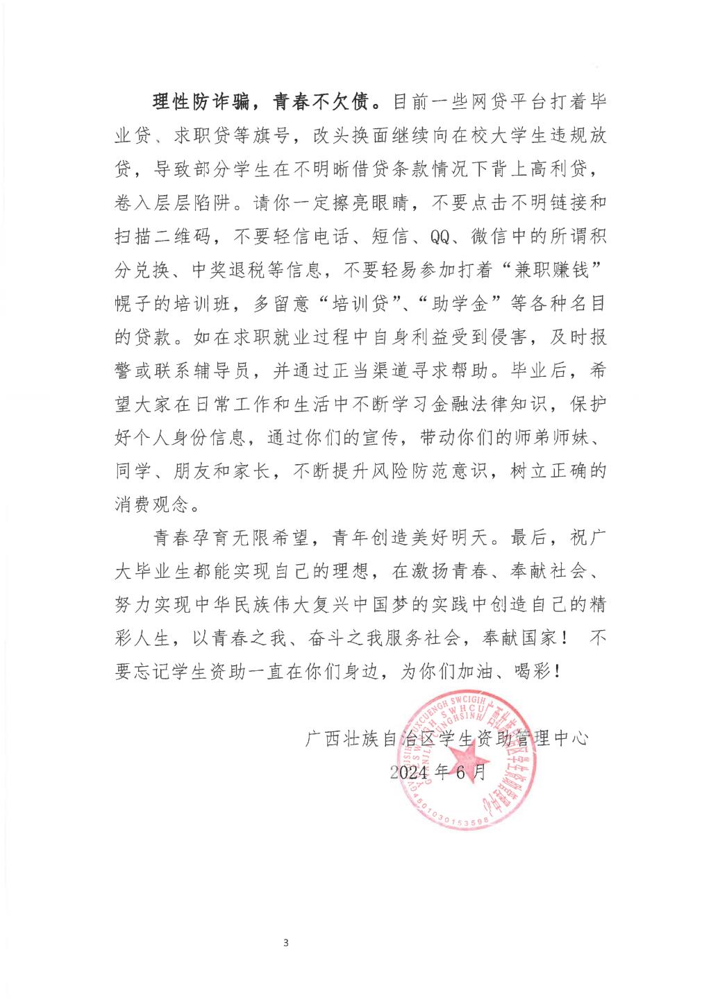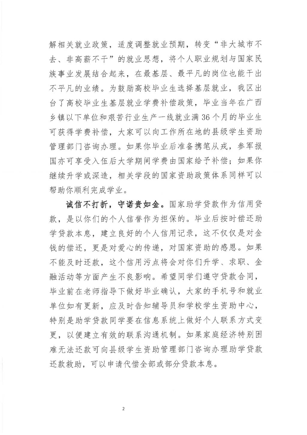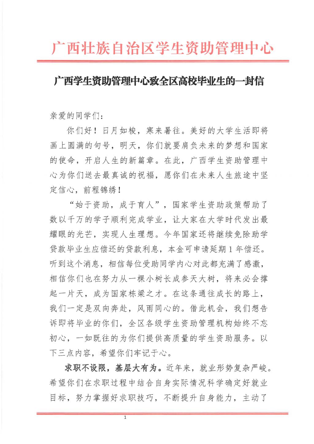 广西学生资助管理中心致全区高校毕业生的一封信