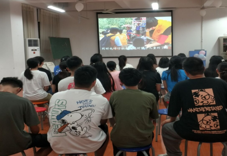 在团体辅导室中,同学们通过观看视频的方式,了解了团体辅导的功能与意义以及其活动组织形式。配合着讲解员的解说,同学们对团体辅导有了焕然一新的看法。