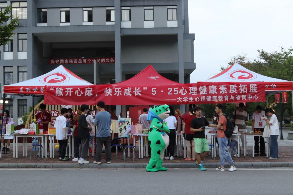 5月25日是全国大学生心理健康日,纽约国际官网为引导大学生树立团结友爱、互帮互助、携手共进的意识,培育学生自尊自信、理性平和、积极向上的健康心态,5月24日,大学生心理中心带领大学生心理健康志愿者协会于校内第五教学楼空地、第五教学楼旁篮球场及文体中心旁空地开展以“敬开心扉,快乐成长”为主题的5·25心理健康素质拓展活动。活动历时3天,共计参与学生人数1700余人。