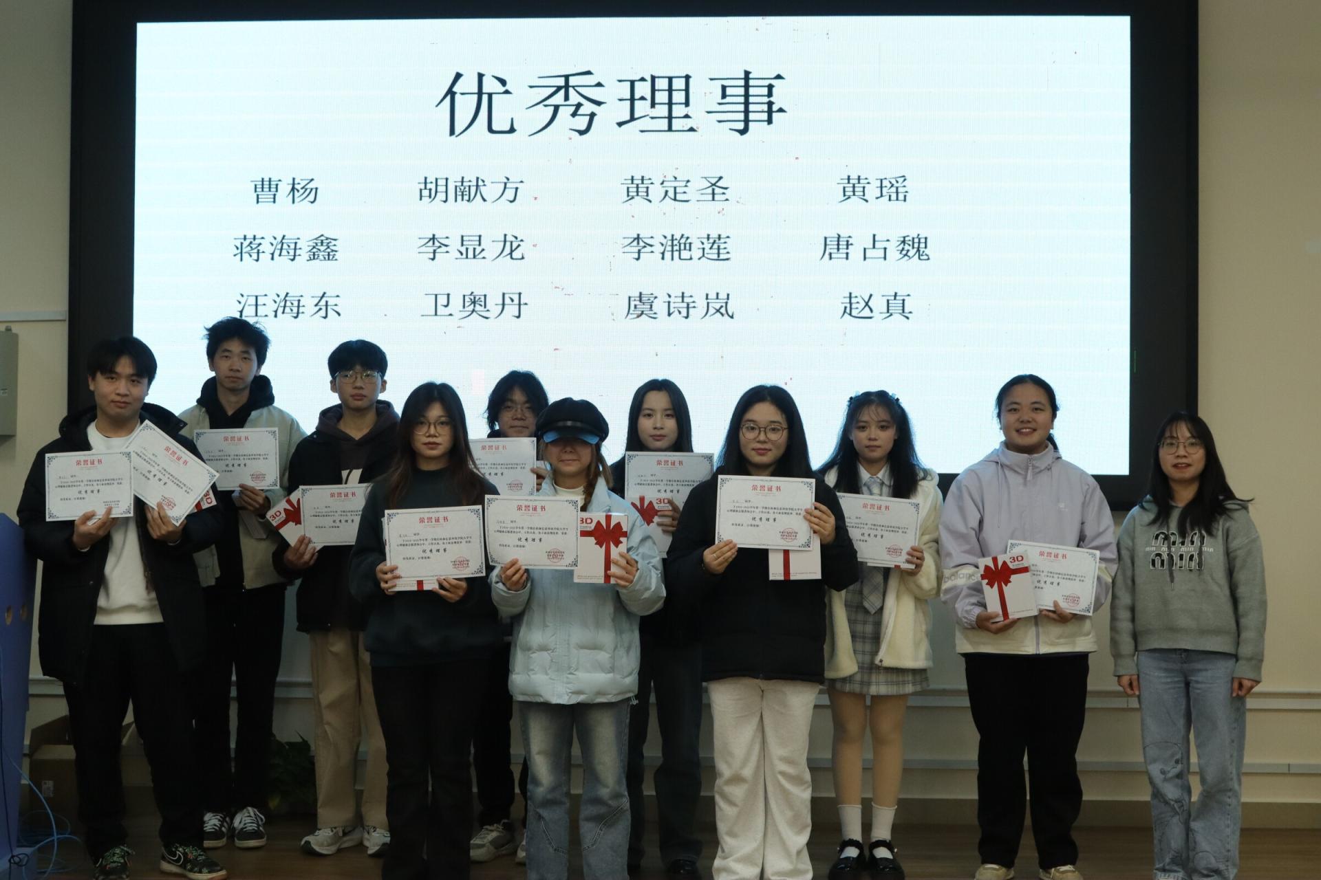 大会伊始,心协负责人对本学期的各项工作进行了全面回顾。在过去的一学期中,心协通过举办心理文化设计大赛、心理健康知识竞赛、心理委员素质拓展等多个活动,为全校师生提供了丰富多样的心理健康支持服务,在校园内营造了关注心理健康的良好氛围。表彰环节上,主持人宣读了表彰名单,社会实践部和团辅拓展部荣获“优秀部门”,曹杨等12人被评为“优秀理事”,张璇等21人被评为“优秀干事”,虞诗岚等78人获“全勤之星”,韩可欣等63人获“活动之星”。