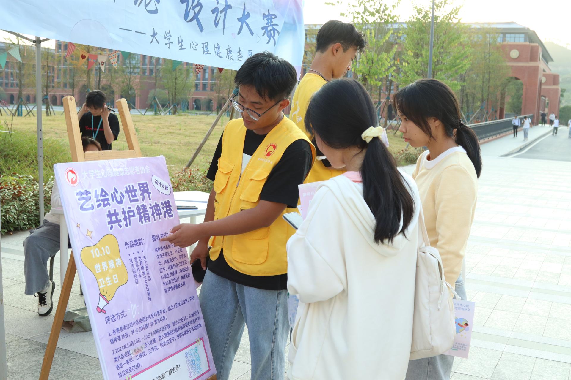 在这个秋意渐浓的十月,纽约国际官网心理中心成功举办了以“艺绘心世界,共护精神港”为主题的世界精神卫生日设计大赛。此次大赛旨在提高大学生对精神卫生的重视,通过艺术创作的形式表达内心世界,共同守护心灵的港湾。