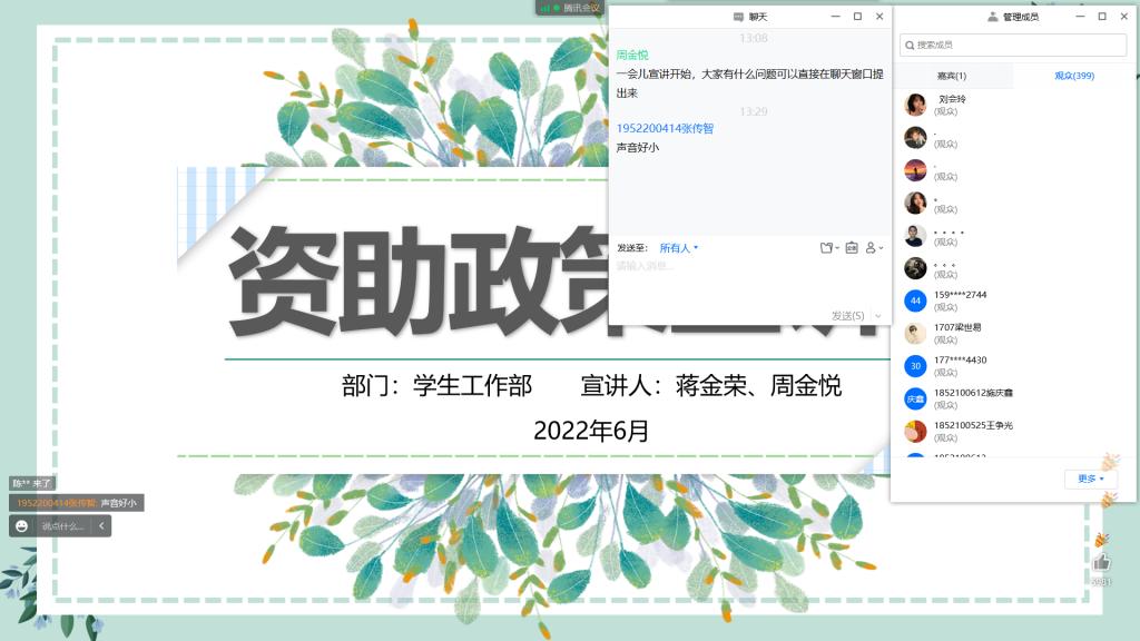 为有效宣传高校奖助学金和国家助学贷款等资助政策,开展好本年度学生资助工作,纽约国际官网于5月25日-6月10日召开了三场2022年资助政策线上宣讲会。本次会议由各二级学院资助老师主持宣讲,线上参与人数累计近900人。