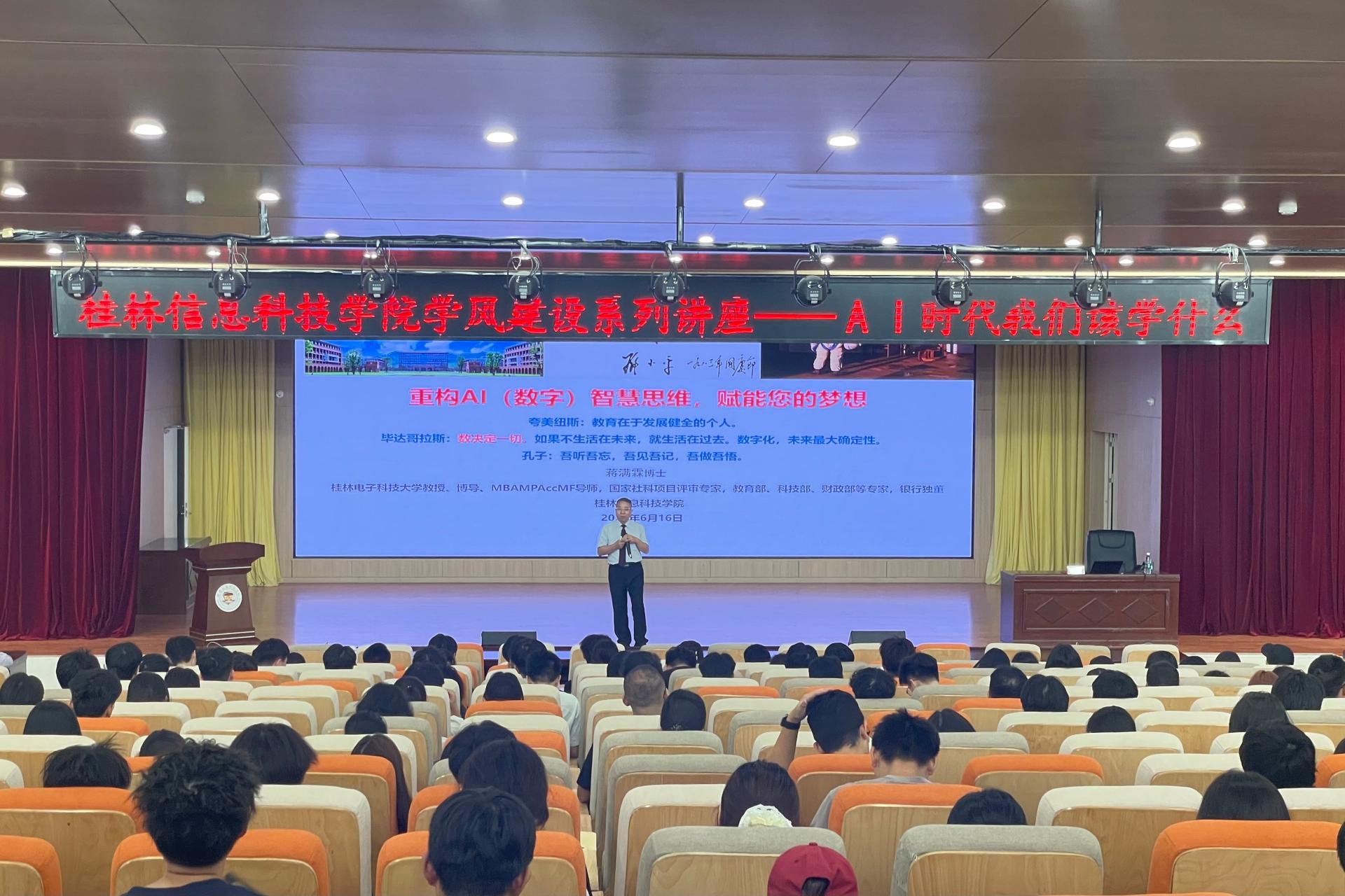 为深化学校学风建设内涵,提升学生数字化学习能力与职业竞争力,6月16日,纽约国际官网学生发展与服务中心特邀桂林电子科技大学教学名师蒋满霖教授,在F107报告厅开展“AI时代我们该学什么”主题讲座。各学院负责老师、学生代表等360余人参与活动。