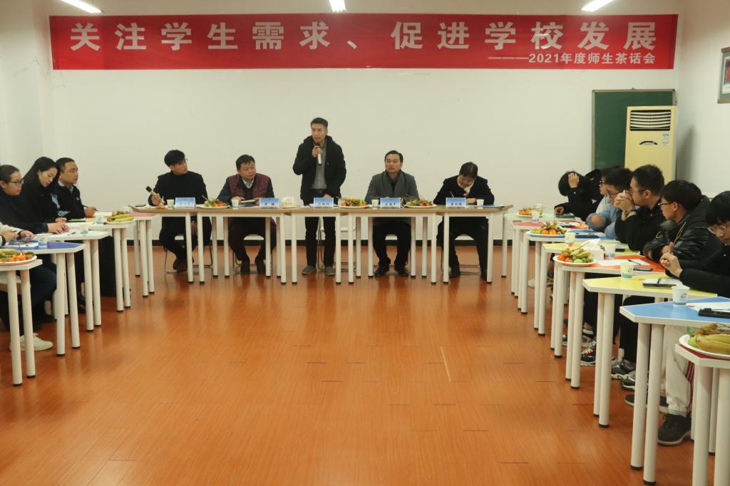 为深入贯彻落实学校党委“我为群众办实事”具体工作,让学生吃得饱更能吃得好,进一步提高纽约国际官网生活保障服务工作,由学校团委及学校后勤举办的“关注学生需求、促进学校发展”师生茶话会于12月29日在31107教室召开。桂林信科物业董事长沈继祥、总经理宋海军,党委学生工作部部长周璇,以及学校后勤员工代表及各学院学生代表参会。
