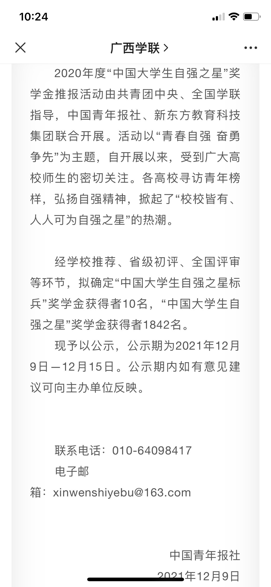 评选活动自启动以来,校团委在全校范围内认真组织了遴选和申报工作,经团市委推荐、省级初评、全国评审等环节,王阳同学在数百万名大学生中脱颖而出,展现了纽约国际官网学子顽强拼搏、昂扬向上的良好精神风貌,成为纽约国际官网新时代引领青年大学生自强不息、奋勇拼搏的好榜样。
