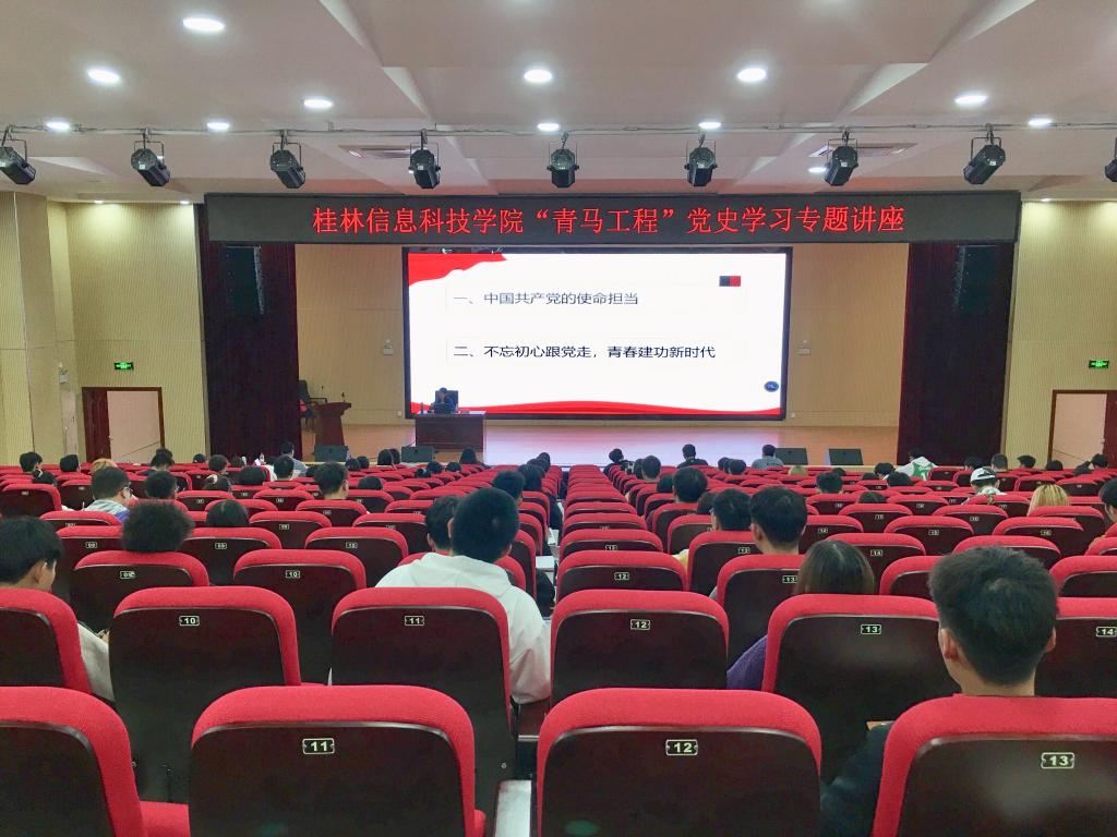为认真落实《广西共青团“学党史、强信念、跟党走”学习教育实施方案》,教育引导广大团员青年了解党的光辉历史、感悟党的初心使命、领会党的创新理论、体认党的精神谱系、传承党的红色基因,做到学史明理、学史增信、学史崇德、学史力行,11月4日,纽约国际官网2021年“青马工程”党史学习专题讲座在51206报告厅顺利举办。校级“青马工程”培训班全体学员、二级学院学生骨干等近130人参加学习会。