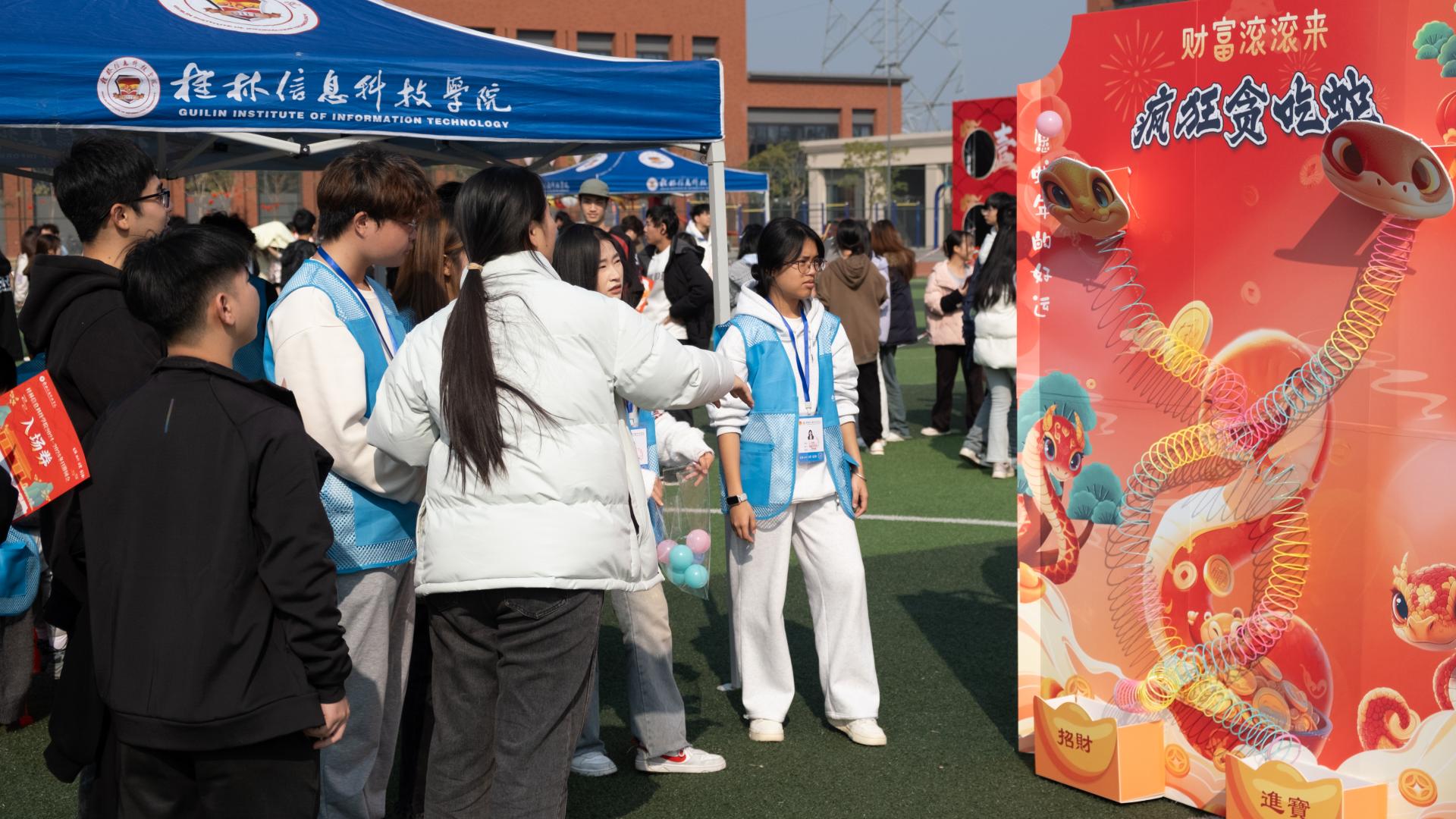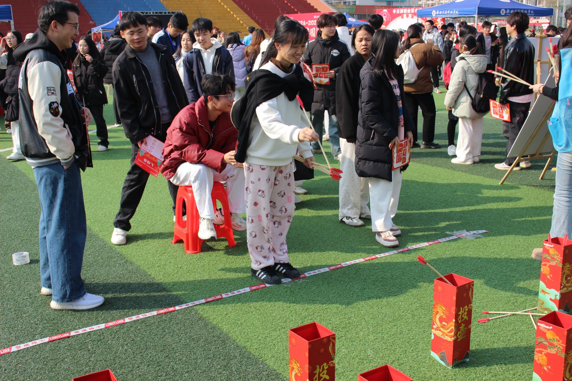 冬日游园会同期举行,参与者凭入场券签到领取游戏卡,自由穿梭游戏与才艺区。游戏区设猜灯谜、投壶、蹴鞠等8项趣味游戏,才艺区有乐队、街舞社团献艺,更鼓励参与者上台展示,赢取印章兑换奖品。奖品涵盖日常用品、保暖品、电子产品等,丰富多样。美食茶歇区供应冬日特色小吃、饮品,增添节日暖意。DIY区尤为火爆,参与者亲手制作对联、扇子、写福字,沉浸于传统文化之美。整个游园会集游戏、才艺、兑换、美食、手工于一体,让参与者在欢声笑语中感受节日乐趣与传统文化的独特魅力,度过了一个温馨、充实的冬日时光。